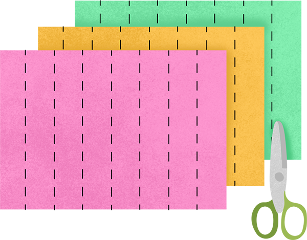 استخدم المقص لقص جميع الأوراق الملونة إلى شرائح