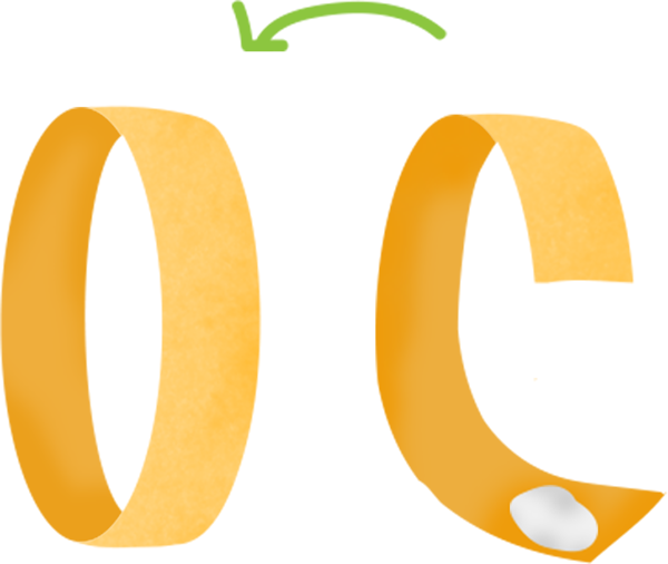 لف الورقة لتشكل حلقة مغلقة، وبهذا تصبح اول قطعة في السلسلة جاهزة لنكمل عليها!