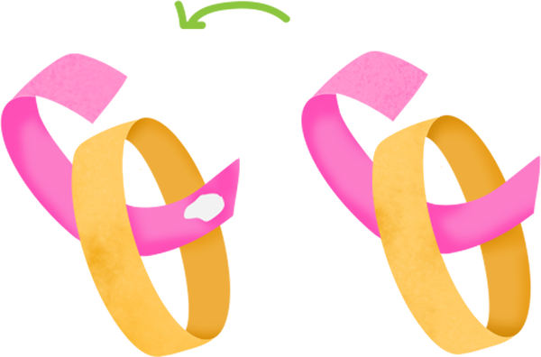 الصق أطراف الورقة الثانية ببعضها، أصبح لدينا حلقتين في السلسلة!